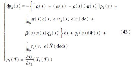(dedt)=N(dedt)-v(de)是独立于W(·)的Poisson鞅测度. α(t)、 β(t)≠0,c(t,e)≥-1.