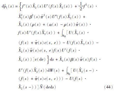 令π(t)为投资者的投资组合,表示t时刻,投入到风险资产的财富比例,称为投资组合,则投资者的财富过程Yπ(·)满足以下的动态方程: